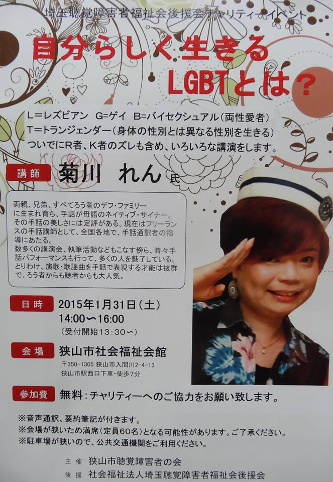 午後は、県聴覚障害者福祉会チャリティーイベント『自分らしく生きるLGBT』講演会に参加しました。