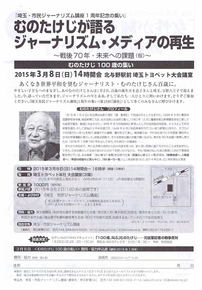 従軍記者だった、100才の現役ジャーナリスト、むのたけじさん。