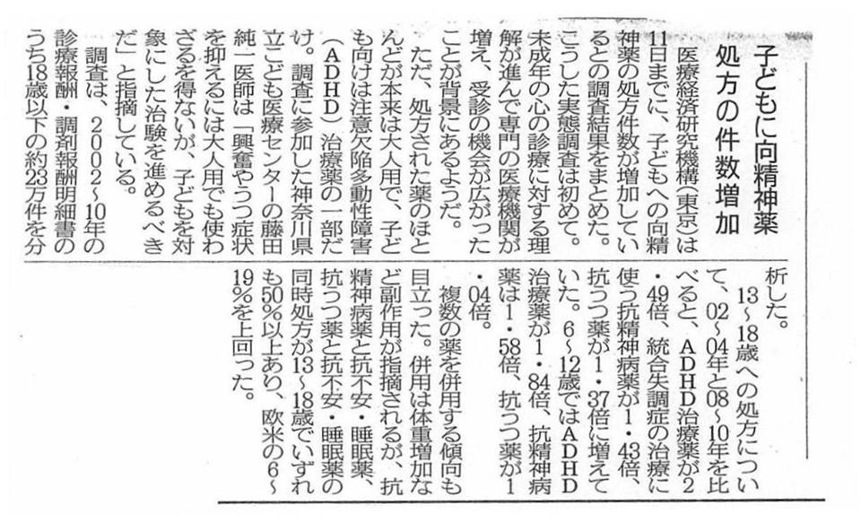子どもへの向精神薬投与が急増 12歳までは処方しないのが常識 NEWSポストセブン 2011年11月16日