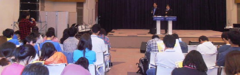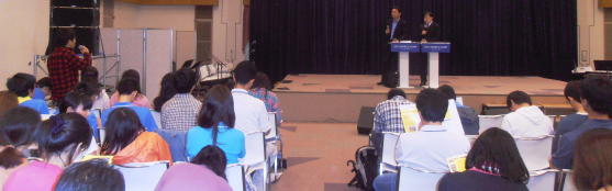 日本語を話せる学生も、わりといて、私の新聞を会場で読んでいる