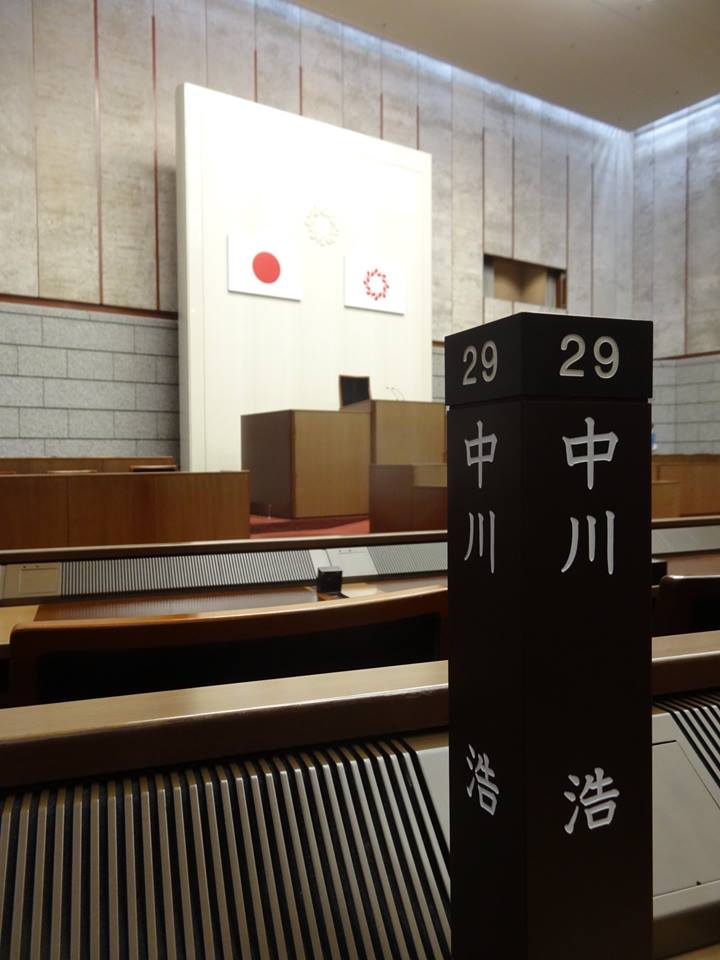 本会議場の自分の席から、知事席・議長席をのぞみ撮影