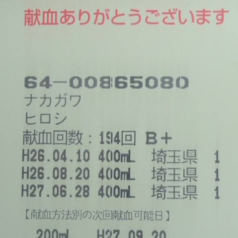献血、194回目。
