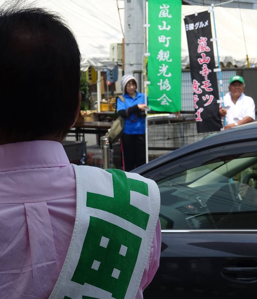 嵐山町は、『辛モツ焼きソバ』。 嵐山町での街頭演説で。