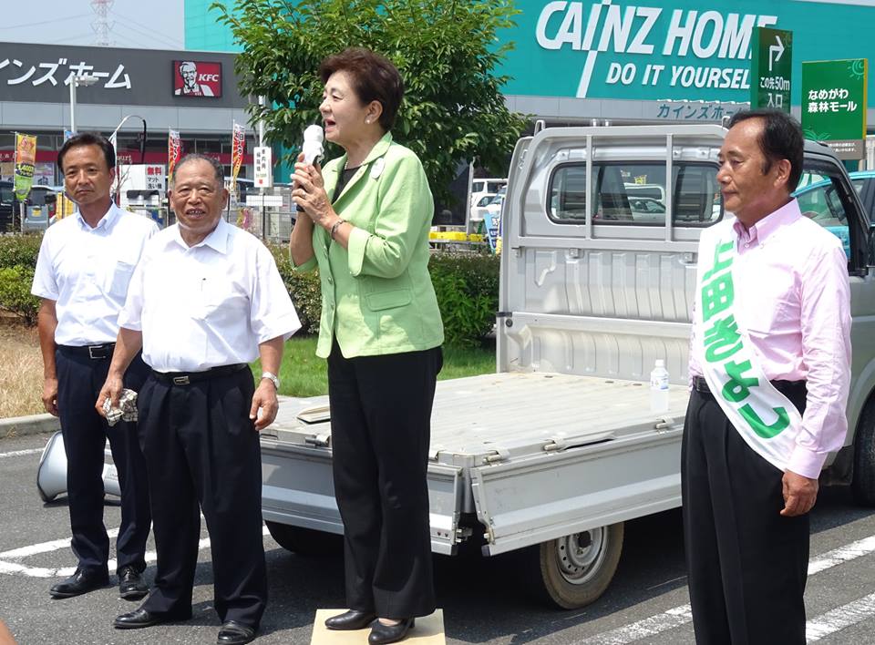 『滋賀県 前知事 嘉田由紀子さん』(写真右)、上田知事と選挙カ