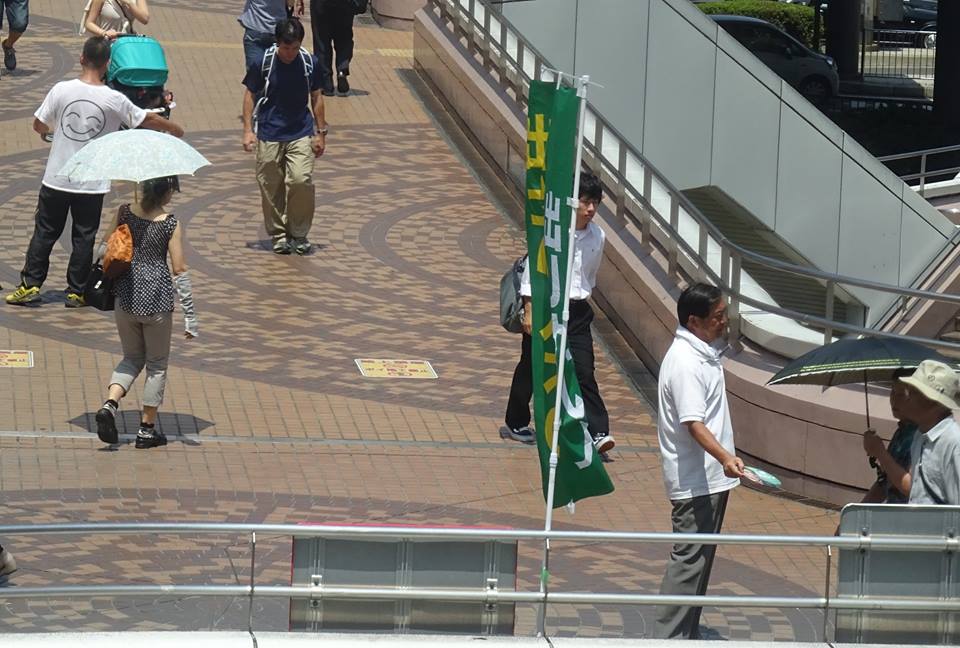 『地獄の12時間街頭演説』。炎天下、ほとんど日影がありません。
