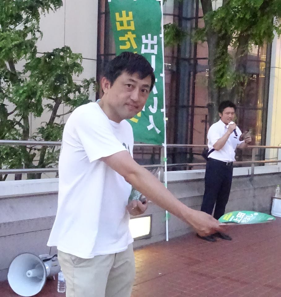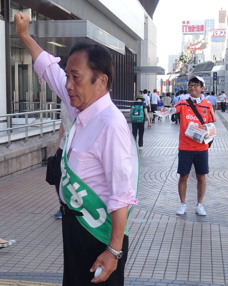 『地獄の12時間街頭演説』、鈴木義弘 衆議院議員(維新の党)が超党派で、上田知事の応援に。