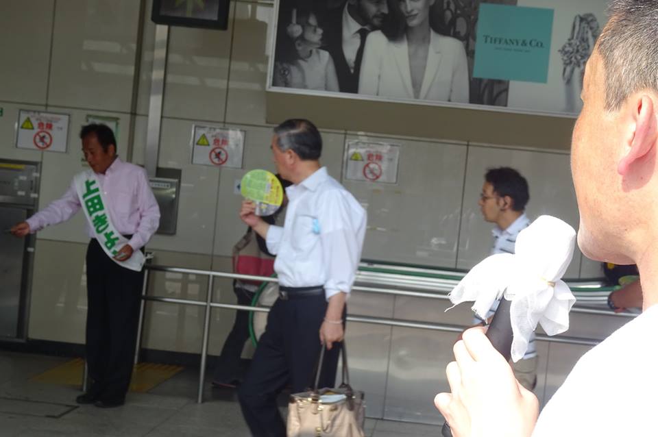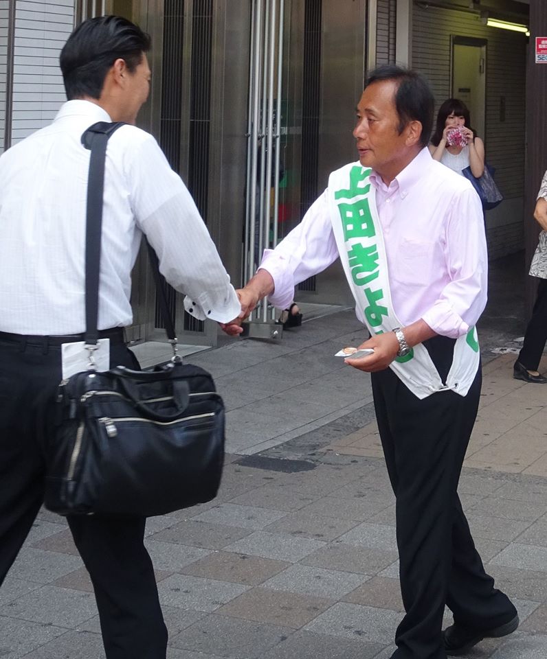 上田きよし本人、名刺(公選)を配り、握手をし、対話