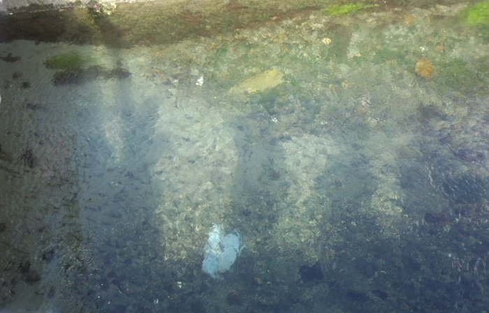 小さな鮎がたくさんいる(写真の細い線)のですが、ガラ携で撮ったから、ほとんど分からないですね。