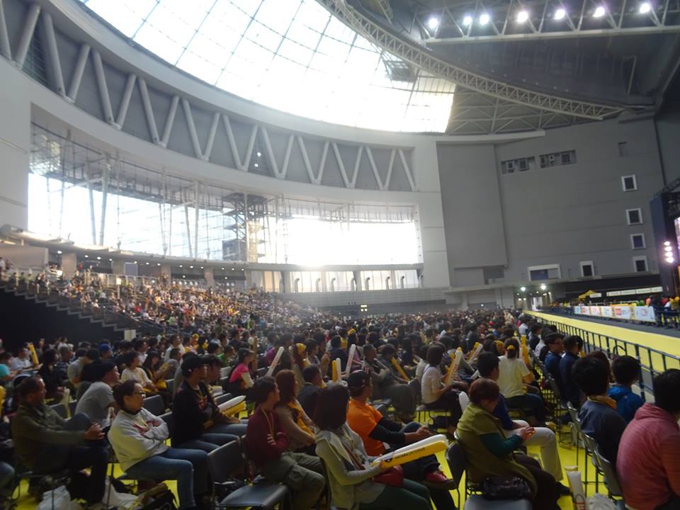 有料観客席。写真右の黄色い所、席の目の前を選手が駆け抜けます。