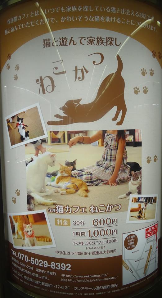 川越での犬・猫譲渡会の代表を務めている方がやっている 保護猫カフェ『ねこかつ』。