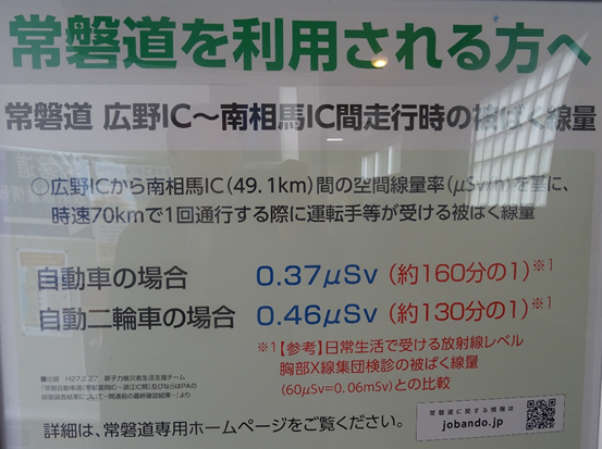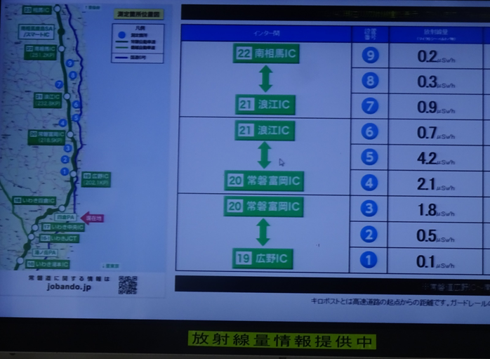 広野パーキングエリアでは、放射線量が表示されている(当日のデータ)