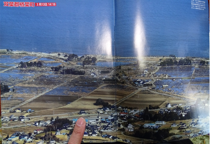 ここでの津波は海岸から500mまで。津波で50世帯やられた。空間線量0.2マイクロシーベルト。年間0.63ミリシーベルト。猪豚が1ヶ月前に出た。