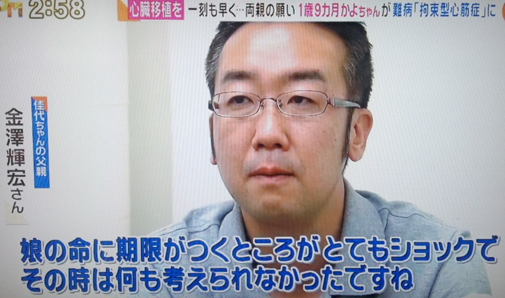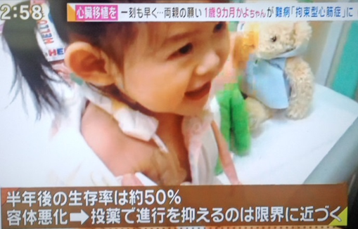 心臓移植が必要なかよちゃん。一昨日は、ご飯を少し食べても戻してしまったとの事。入院し始めた時は、小指の先くらいのおにぎりや、小さくちぎったパンを、食べていたとの事。(フジテレビ『グッディ』6月25日より)
