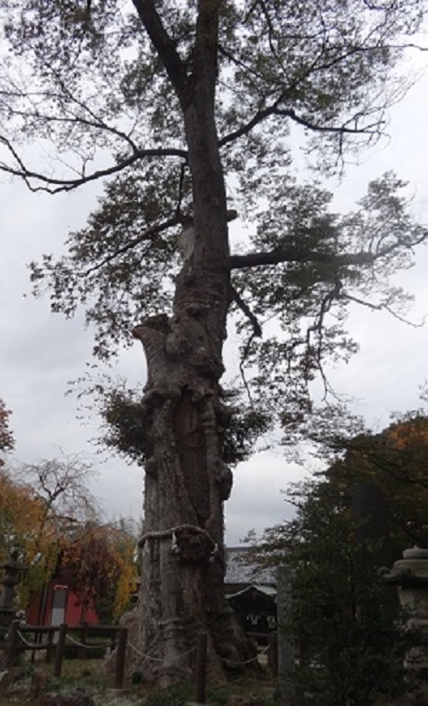 神社にあるケヤキは、樹齢1000年。県内第1級で、皇太子が来週16日に熊谷にお見えになり、全国育樹祭で、この苗木も植える。