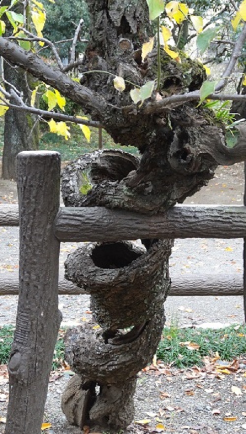 梅の木は200年を超えると、ねじれる。広瀬神社のこの木は、樹齢400年。