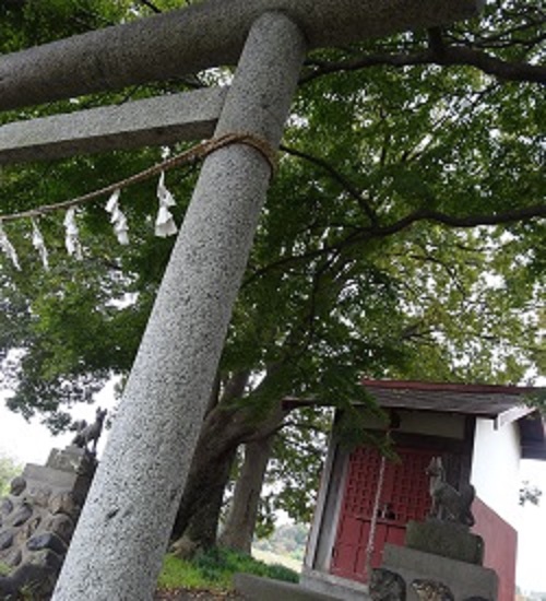 ②自転車道から、バッティングセンターの手前に見えるのが、松森稲荷。