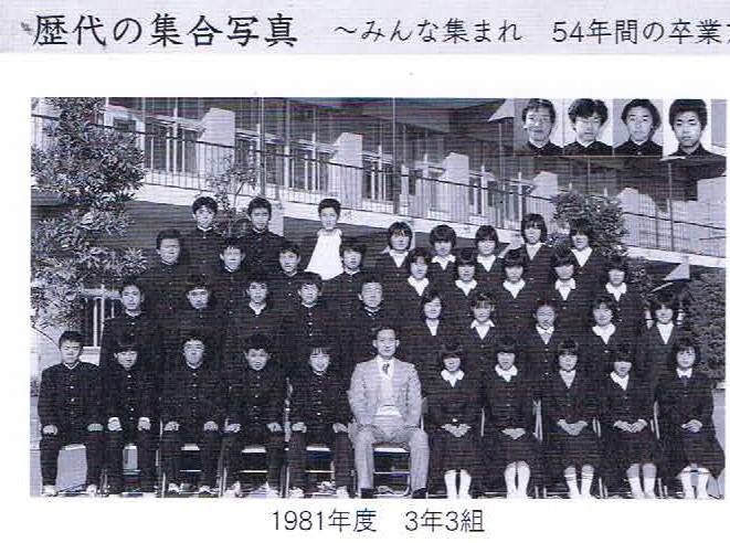 東中卒業生全員(!)の写真が『閉校記念誌』に載っていました。