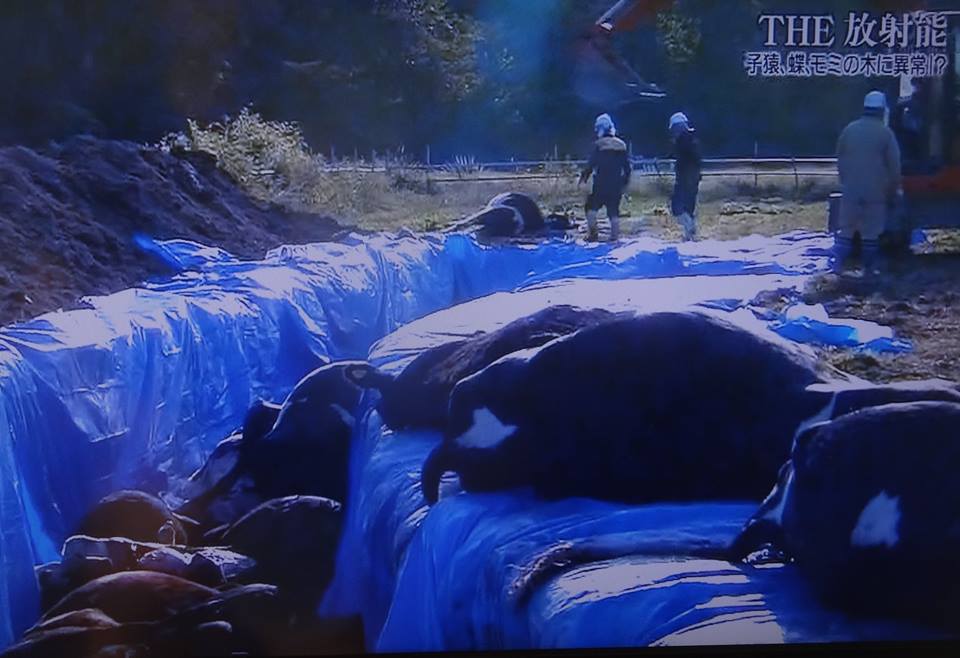 牛、皮膚に白い斑点(白斑)が出る牛が3,4マイクロシーベルト地域で多発(メラニンが無くなる)。殺処分した。