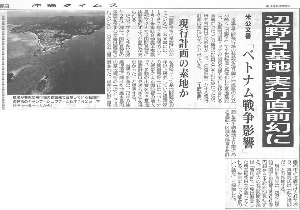 普天間基地の代替だと、新基地ではないと政府は言っているが、今の普天間基地に無い新しい機能が付く要塞。燃料桟橋、護岸・係船機能。