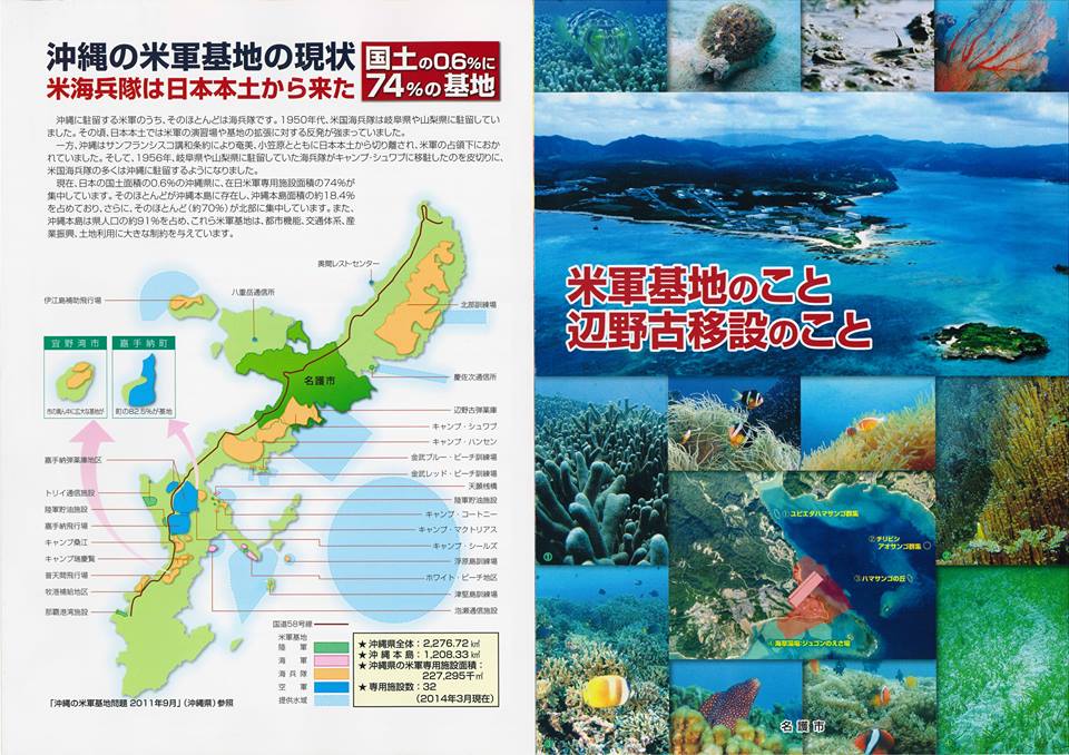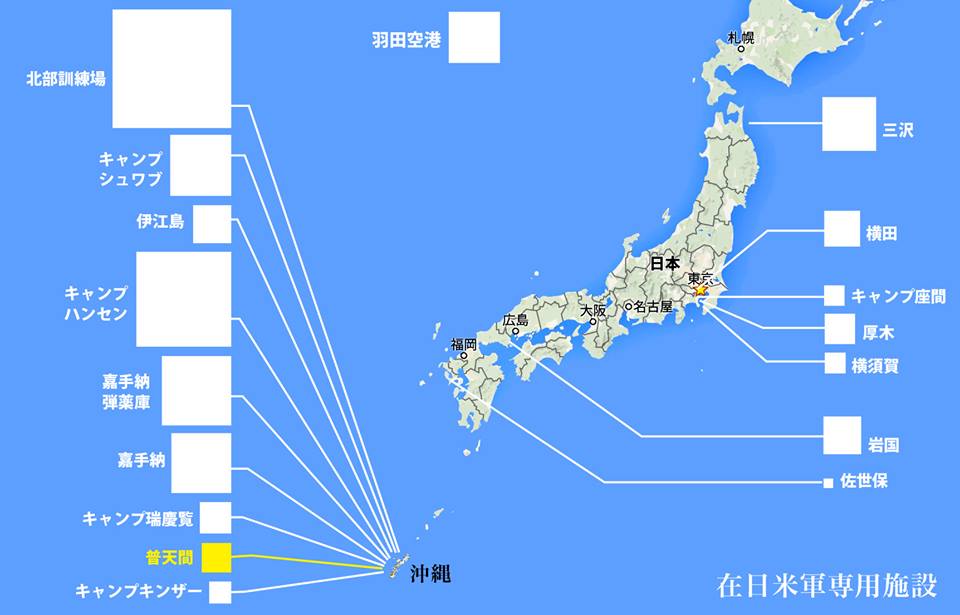 大事なのは「沖縄が無くせと言ってるのは、黄色い普天間基地だけ」という事。普天間が無くなっても、まだまだ米軍基地がたくさんある。辺野古新基地は面積は小さくなりますが、機能は上がります。