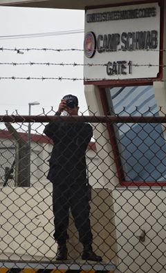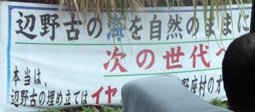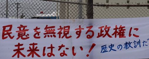 キャンプ・シュワブ前の横断幕。