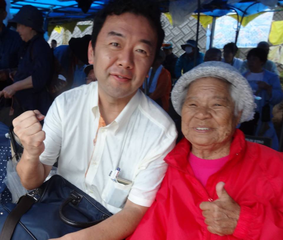 70年前、沖縄戦の砲火をくぐり抜け、現在は、辺野古新基地建設調査へ向かうトラックを体で止めたりもする 反戦・辺野古の象徴的おばあ、島袋文子さん(86才)の隣の席に、たまたま座らせて頂きました。