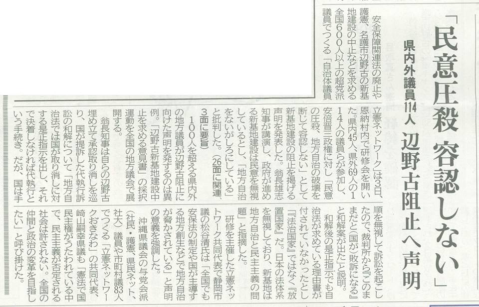 自民党総裁の任期は、最長6年間で2018年9月までで、それまでに改憲を実現したいと、公然と主張し始めている。歴史を踏まえた沖縄デモクラシーを、全国に広げないといけない。