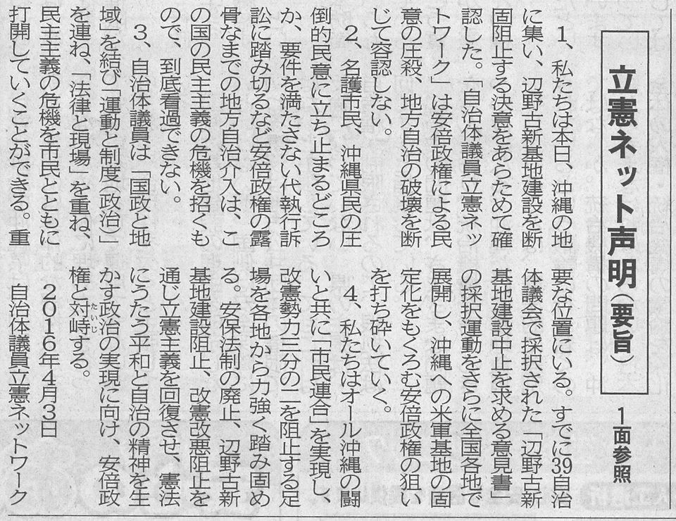 沖縄の民主主義はヤワではない。自分達で、基本的人権を勝ち取った。沖縄は地方自治の原点。