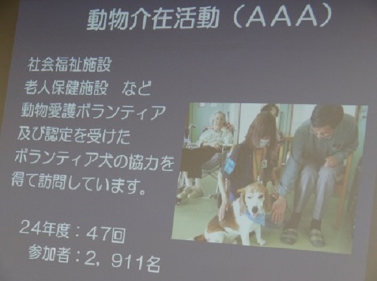 県動物指導センターでは、ボランティアの人(現在40人登録)と犬を募集しているそうです。