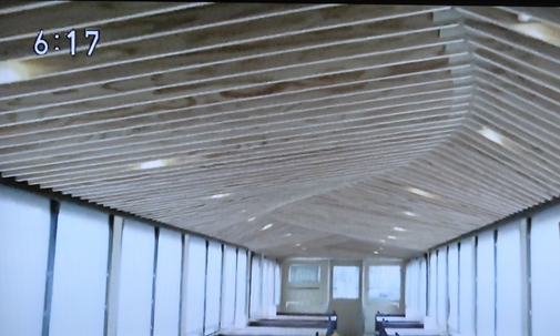 3号車はクローズドキッチン・オープンキッチン、バーカウンターを配置し、天井に杉板を使用。