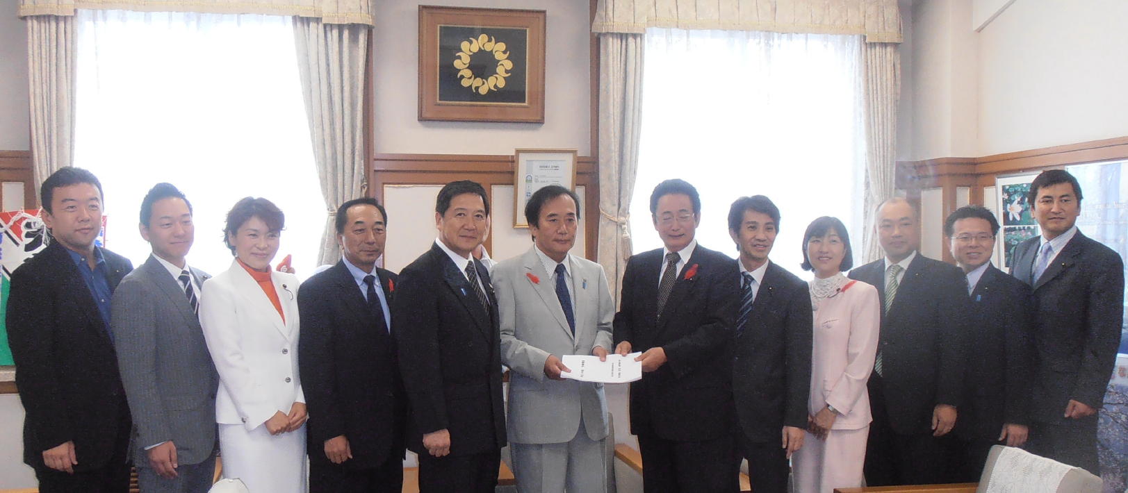 知事に会派でお会いし、来年度予算要望書を提出。知事から借金削減について決意が語られた。