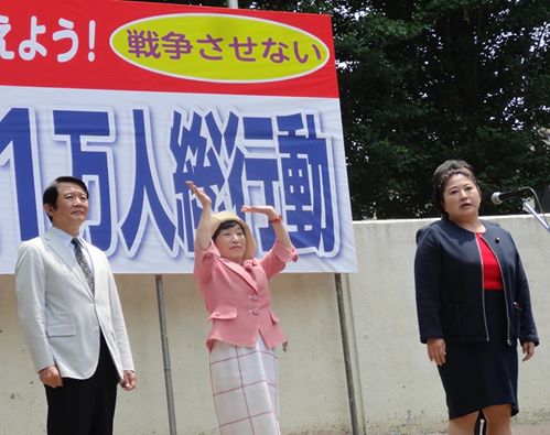 民進党を代表し、小宮山泰子 衆議院議員「安倍総理は、憲法の勉強をし直せ。安保法の廃止を」。