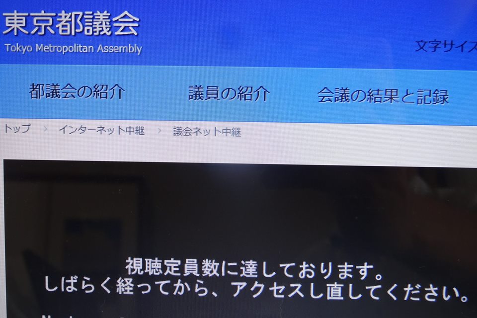 都議会のネット中継、今日の一般質問は、回線パンク。