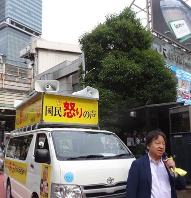 渋谷駅スクランブル交差点前で『国民怒りの声』演説。