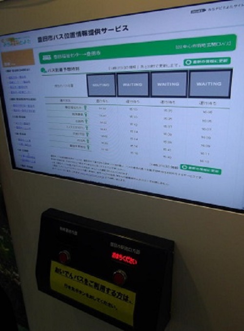 ②デマンド交通。合併して市の面積の7割が山間地域になり、バス路線の存続が課題になった。そこで、バス停に押しボタンパネルを設置して、押せばバスが来るようにし、誰も利用しない所を通らなくて良くなった。