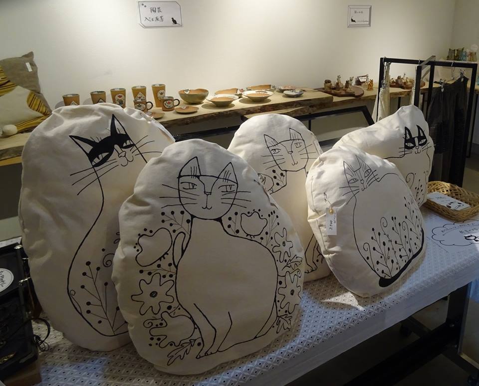 飯能市にあるカフェで行われている、猫の手芸展(明日(水)3時まで)。