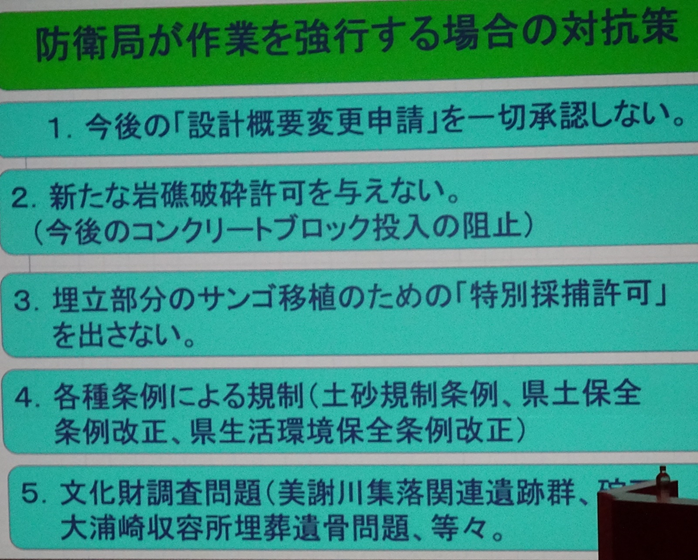 国は24億円かけて違法な調査をし、サンゴを壊した。高江の配備はオスプレイ無しでアセスしたが、辺野古では、国民が意見を言える期間が終わった後に、オスプレイ配備を出して来た。