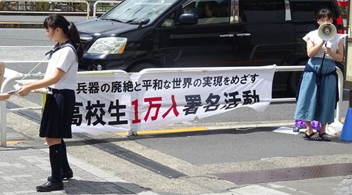高校生の皆さんが反核・平和の署名活動をしていました。ありがと。