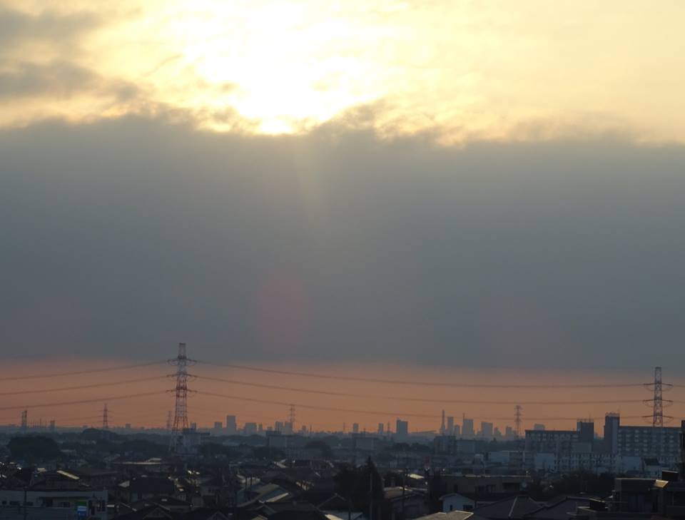 今日の朝日(狭山から見た狭山台・さいたま新都心・大宮の方角。5:36)。