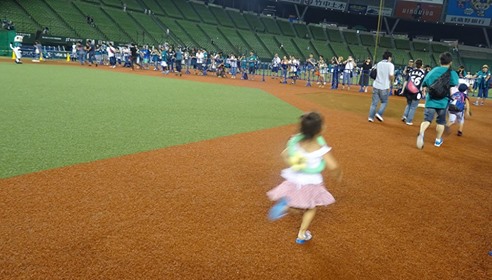 試合終了後、誰でもグラウンドに入れてダイアモンドを走る事が出来、私も走りました。(^^