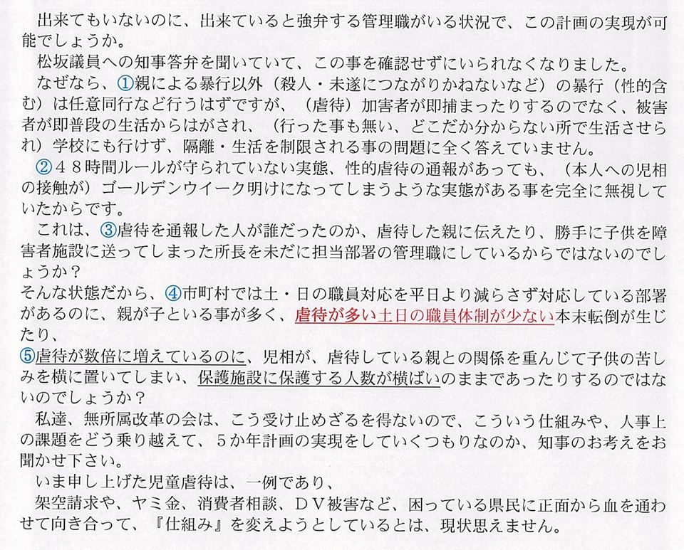 『児童虐待』対策の県の問題点について質問した根拠資料を、3枚紹介します。