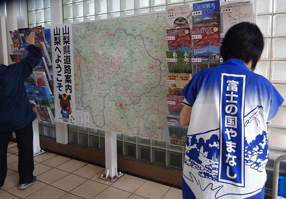 高速道路のパーキングで、県内各市町村の観光パンフレット置き場を初めて見た。