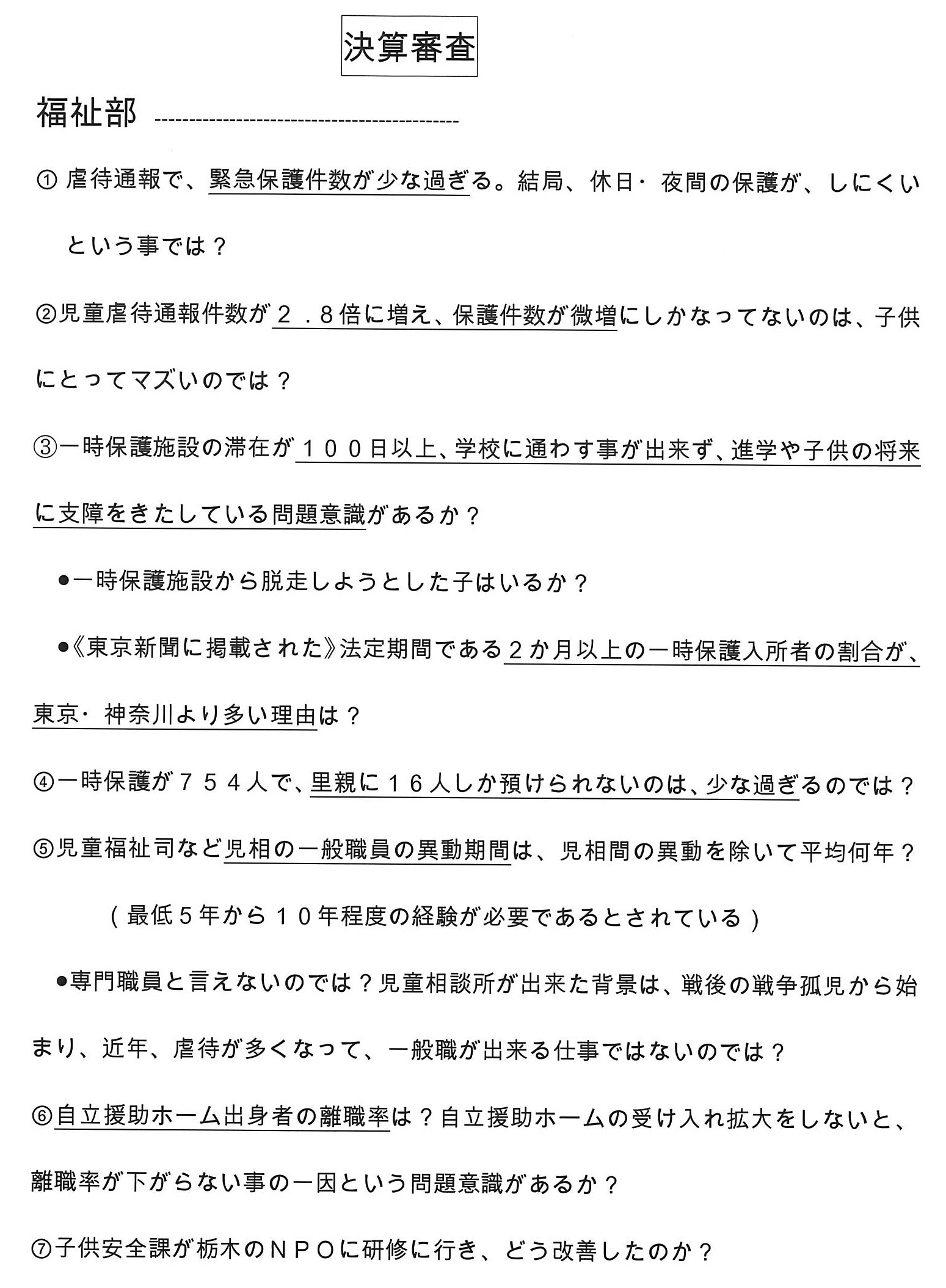 【児童虐待対策】について、今日の決算委員会で、私が所属する会派を代表して、松坂県議(東松山・吉見・川島)が質問した原稿です。