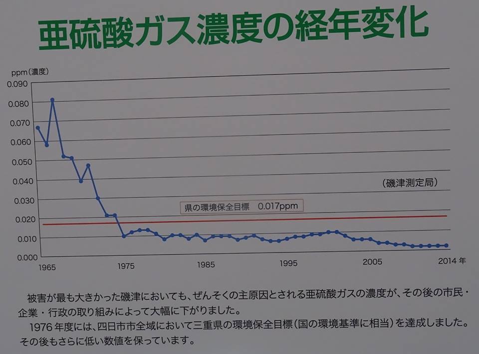 私が自転車での日本一周で、四日市を訪れた29年前煙いのを感じたが、数値的には、1975年に環境基準をクリアし、当時も下回っており、現在は更に向上している。