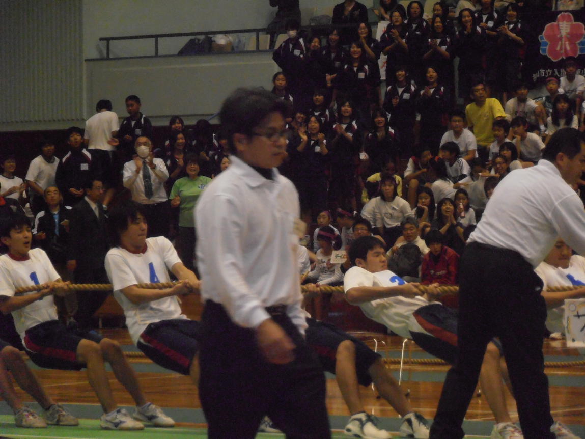 小・中学生が男女共に顔をしかめて真剣にやっている姿に感動しました。大会役員約150人の皆さん・先生方、大変ありがとうございました(中には、昨日の工業高校50周年の実行委員さんも)。大会会長さんの話では、所沢市では綱引き大会は行われておらず、狭山市に数年前見に来たとの事。