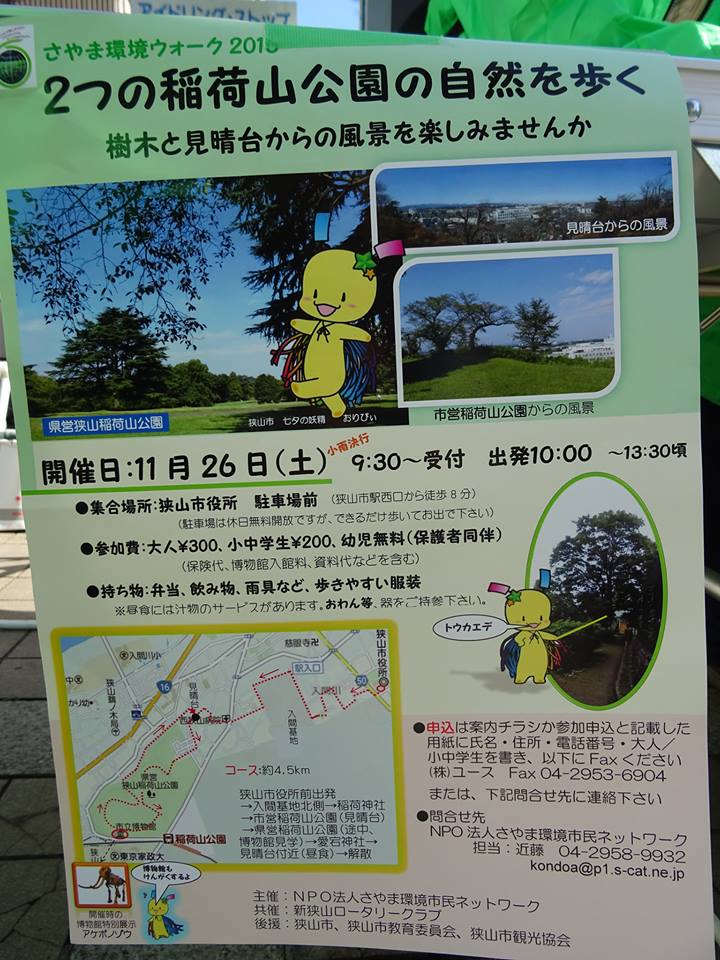狭山の環境市民団体主催のウォーキング・イベントに参加。