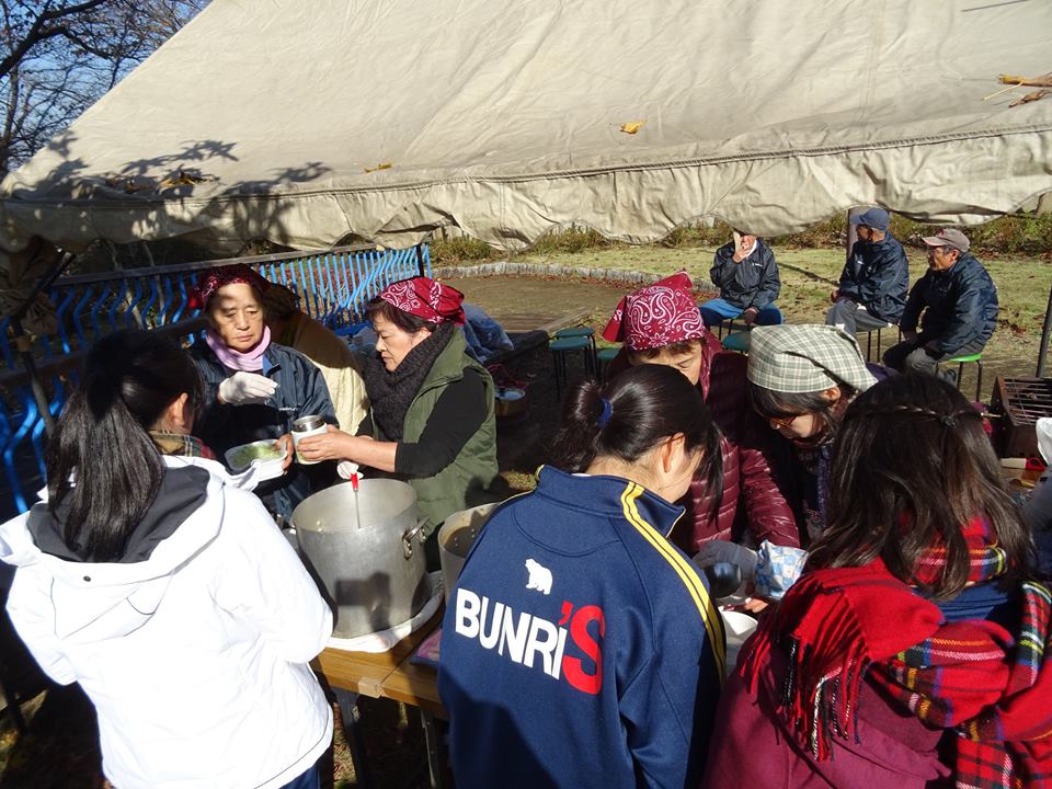 ボランティアの方々が、炊き出しでトン汁を用意して下さいました。