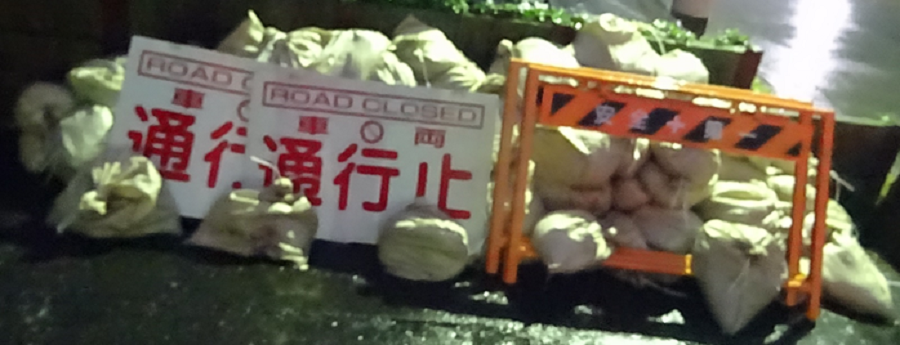 この『土のう』を、豪雨になってから、道路に積み、通行止めにします。
