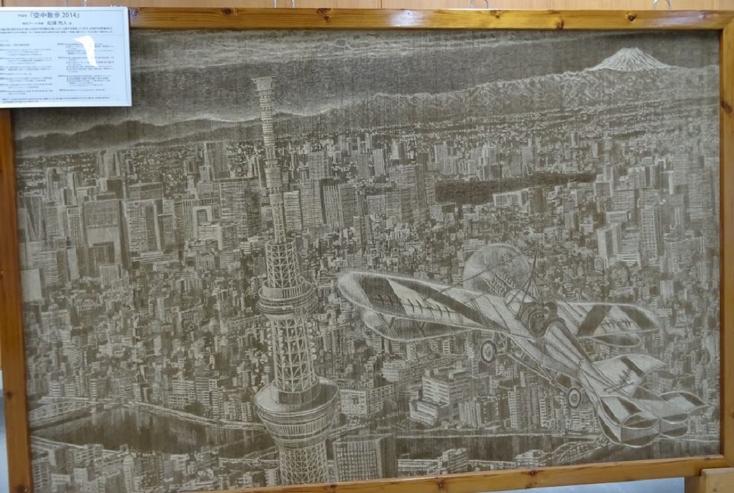 【段ボールをひっかいて描かれたスカイツリー】