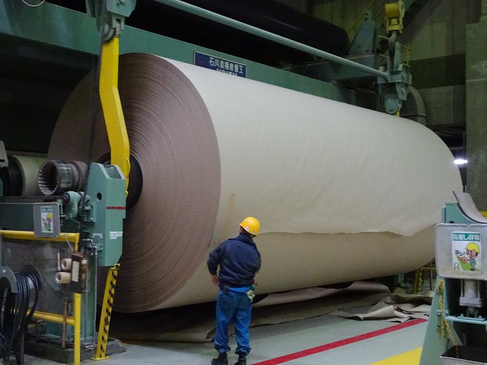 レンゴー株式会社で、日本の段ボールの1割を生産し、日本一の生産ラインがある。